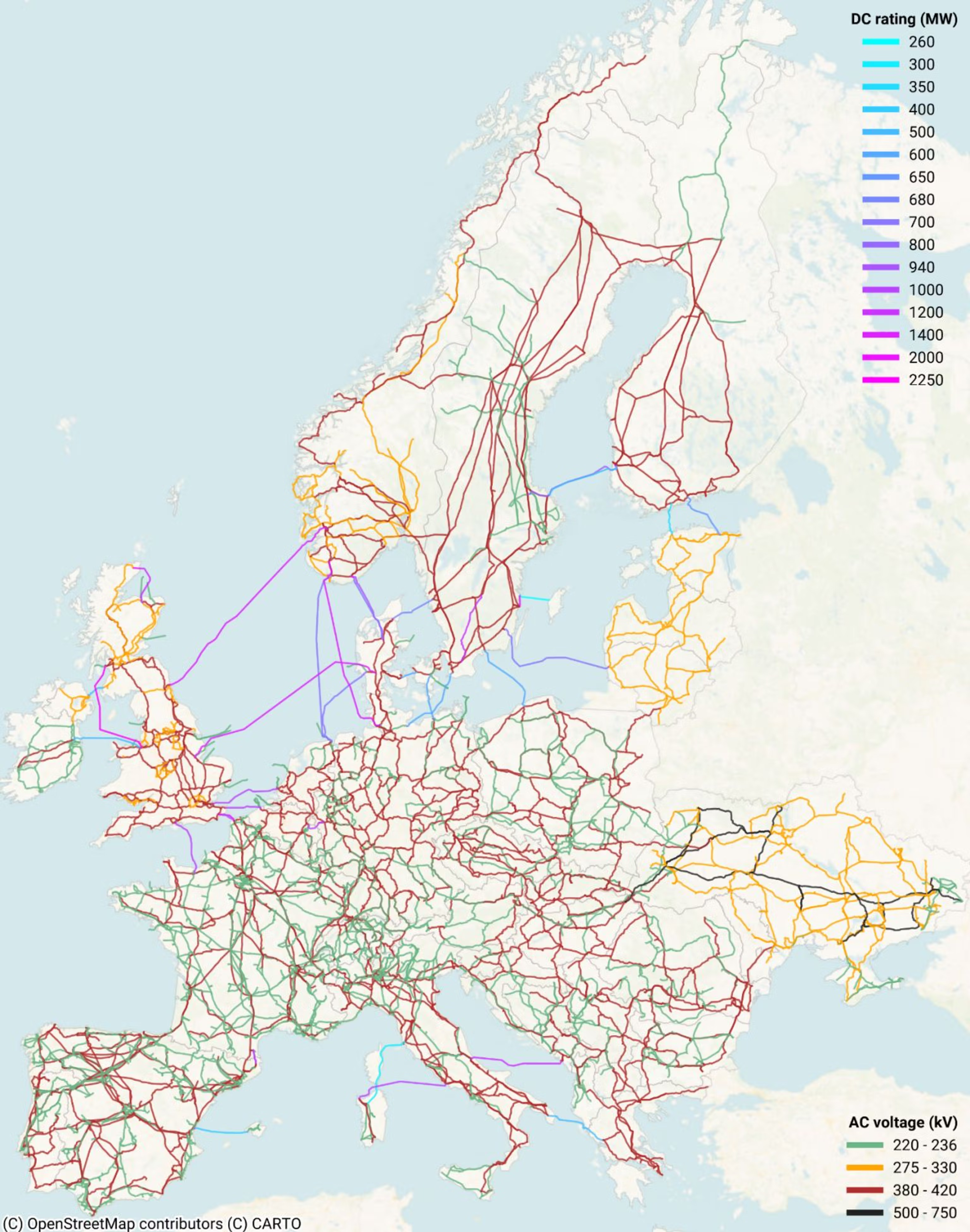 Figure 1. European electric transmission lines. Source: Electricity Maps